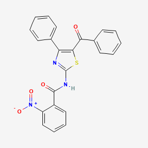 The mechanism of action of N-(5-benzoyl-4-phenyl-1,3-thiazol-2-yl)-2-nitrobenzamide would depend on its specific biological target. Generally, thiazole derivatives can interact with various enzymes and receptors, modulating their activity. The nitrobenzamide moiety might contribute to its binding affinity and specificity towards certain molecular targets.
