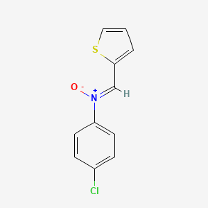 The synthesis of (NZ)-4-chloro-N-oxido-N-[(thiophen-2-yl)methylidene]anilinium typically involves the condensation of 4-chloroaniline with thiophene-2-carbaldehyde in the presence of an oxidizing agent. The reaction is carried out under reflux conditions in an appropriate solvent, such as ethanol or methanol. The resulting product is then purified using column chromatography to obtain the desired compound in high yield.