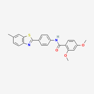 2,4-Dimethoxy-N-[4-(6-methyl-1,3-benzothiazol-2-yl)phenyl]benzamide is a complex organic compound with significant potential in medicinal chemistry. This compound belongs to the class of benzamides and is characterized by the presence of methoxy groups and a benzothiazole moiety, which contribute to its diverse biological activities.