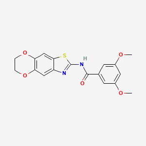 Attachment of the Dimethoxybenzamide Moiety: Finally, the dioxino-benzothiazole intermediate is coupled with 3,5-dimethoxybenzoic acid or its derivatives using coupling reagents like EDCI (1-ethyl-3-(3-dimethylaminopropyl)carbodiimide) and DMAP (4-dimethylaminopyridine).