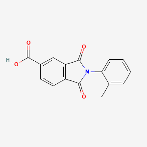 The mechanism of action of 1,3-Dioxo-2-o-tolyl-2,3-dihydro-1H-isoindole-5-carboxylic acid involves its interaction with specific molecular targets and pathways. The compound’s effects are mediated through its ability to bind to various receptors and enzymes, influencing cellular processes such as signal transduction, gene expression, and metabolic pathways .