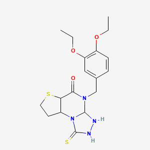 8-[(3,4-Diethoxyphenyl)methyl]-12-sulfanylidene-5-thia-1,8,10,11-tetraazatricyclo[7.3.0.0^{2,6}]dodeca-2(6),3,9-trien-7-one is a useful research compound. Its molecular formula is C18H18N4O3S2 and its molecular weight is 402.49. The purity is usually 95%.