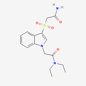 The mechanism of action of 2-[3-(carbamoylmethanesulfonyl)-1H-indol-1-yl]-N,N-diethylacetamide involves its interaction with specific molecular targets and pathways. The indole nucleus can bind to various receptors, influencing biological processes. The sulfonyl group may enhance the compound’s solubility and bioavailability, while the diethylacetamide moiety can modulate its pharmacokinetic properties .