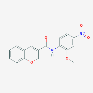 The synthesis of N-(2-methoxy-4-nitrophenyl)-2H-chromene-3-carboxamide typically involves multiple steps, starting with the preparation of the chromene core. One common method is the Pechmann condensation, which involves the reaction of phenols with β-ketoesters in the presence of acid catalysts. The resulting chromene intermediate is then subjected to further functionalization to introduce the methoxy and nitro groups on the phenyl ring.