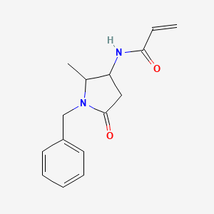 Synthetic Routes and Reaction Conditions: The synthesis of N-(1-Benzyl-2-methyl-5-oxopyrrolidin-3-yl)prop-2-enamide typically involves the reaction of benzylamine with methyl isocyanate to form an intermediate, which is then further reacted to produce the final compound. The reaction conditions often include controlled temperatures and the use of solvents to facilitate the reaction .