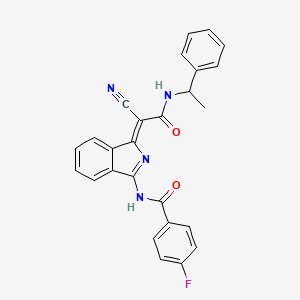 (Z)-N-(1-(1-cyano-2-oxo-2-((1-phenylethyl)amino)ethylidene)-1H-isoindol-3-yl)-4-fluorobenzamide