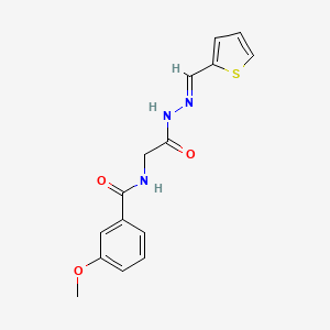 (E)-3-methoxy-N-(2-oxo-2-(2-(thiophen-2-ylmethylene)hydrazinyl)ethyl)benzamide is unique due to its combination of functional groups, which confer specific chemical reactivity and biological activity. The presence of the thiophene ring and the hydrazone moiety distinguishes it from other benzamide derivatives, potentially leading to unique interactions with biological targets and novel applications in various fields.