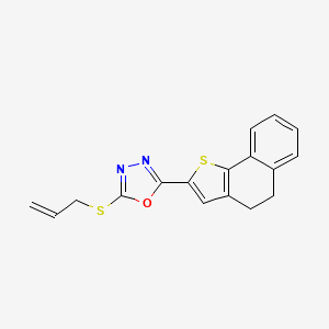 The mechanism of action of 2-(Allylsulfanyl)-5-(4,5-dihydronaphtho[1,2-b]thiophen-2-yl)-1,3,4-oxadiazole involves its interaction with specific molecular targets. For example, its antimicrobial activity is attributed to its ability to bind to bacterial enzymes, inhibiting their function and leading to cell death. In cancer cells, the compound may induce apoptosis by interacting with cellular pathways involved in cell cycle regulation and apoptosis.