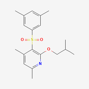 The synthesis of 3-[(3,5-Dimethylphenyl)sulfonyl]-2-isobutoxy-4,6-dimethylpyridine typically involves multiple steps, including the formation of the pyridine ring and the subsequent introduction of the sulfonyl and isobutoxy groups. Specific reaction conditions, such as temperature, solvent, and catalysts, are crucial for achieving high yields and purity .