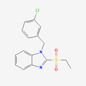 The compound features a benzimidazole core with a 3-chlorobenzyl group and an ethylsulfonyl group, which may influence its biological properties. The IUPAC name is 1-[(3-chlorophenyl)methyl]-2-ethylsulfonylbenzimidazole. Its molecular formula is C16H15ClN2O2S, with a molecular weight of approximately 334.82 g/mol.