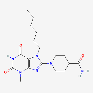 1-(7-hexyl-3-methyl-2,6-dioxo-2,3,6,7-tetrahydro-1H-purin-8-yl)piperidine-4-carboxamide