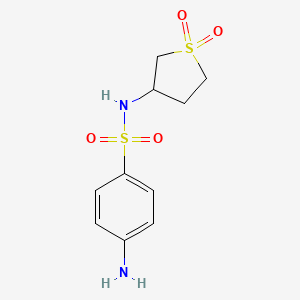 The synthesis of 4-amino-N-(1,1-dioxidotetrahydrothien-3-yl)benzenesulfonamide typically involves the reaction of 4-aminobenzenesulfonamide with a suitable thienyl derivative under controlled conditions. The reaction is carried out in the presence of a catalyst and under specific temperature and pressure conditions to ensure the formation of the desired product .