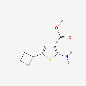 The mechanism of action of Methyl 2-amino-5-cyclobutylthiophene-3-carboxylate involves its interaction with specific molecular targets. The amino group can form hydrogen bonds with biological macromolecules, while the ester group can undergo hydrolysis to release active metabolites. These interactions can modulate various biochemical pathways, leading to the compound’s observed biological effects .