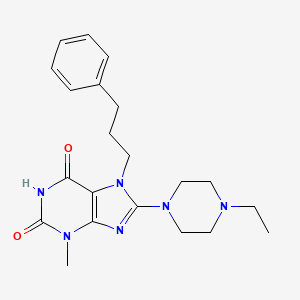 8-(4-ethylpiperazin-1-yl)-3-methyl-7-(3-phenylpropyl)-1H-purine-2,6(3H,7H)-dione is a synthetic compound belonging to the purine class, characterized by its unique structure which includes a piperazine moiety. This compound has garnered attention for its potential biological activities, particularly in the fields of pharmacology and medicinal chemistry.