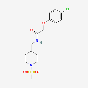 The mechanism of action of 2-(4-chlorophenoxy)-N-((1-(methylsulfonyl)piperidin-4-yl)methyl)acetamide depends on its specific application. In biological systems, it may interact with molecular targets such as enzymes or receptors, modulating their activity. The piperidine ring and chlorophenoxy group are likely involved in binding interactions, while the methylsulfonyl group may influence the compound’s solubility and stability.
