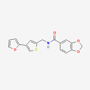 N-{[4-(furan-2-yl)thiophen-2-yl]methyl}-2H-1,3-benzodioxole-5-carboxamide is a complex organic compound that features a unique combination of furan, thiophene, and benzodioxole moieties. These structural elements are known for their diverse chemical properties and biological activities, making this compound of significant interest in various fields of scientific research.