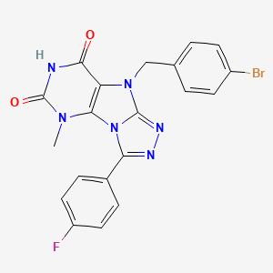 5-[(4-Bromophenyl)methyl]-8-(4-fluorophenyl)-1-methylpurino[8,9-c][1,2,4]triazole-2,4-dione is a useful research compound. Its molecular formula is C20H14BrFN6O2 and its molecular weight is 469.274. The purity is usually 95%.