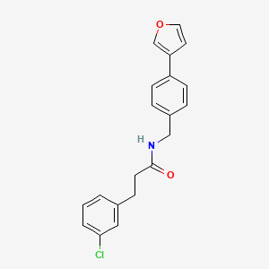 3-(3-chlorophenyl)-N-(4-(furan-3-yl)benzyl)propanamide is an organic compound with potential biological activity due to its structural characteristics, including a propanamide functional group and the presence of both chlorophenyl and furan moieties. This compound may exhibit various pharmacological properties, making it a subject of interest in medicinal chemistry.