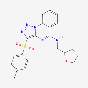 The mechanism of action of 3-(4-methylbenzenesulfonyl)-N-[(oxolan-2-yl)methyl]-[1,2,3]triazolo[1,5-a]quinazolin-5-amine involves its interaction with specific molecular targets and pathways. The compound is known to bind to certain enzymes and receptors, modulating their activity and leading to various biological effects. The exact molecular targets and pathways involved depend on the specific application and context of use.