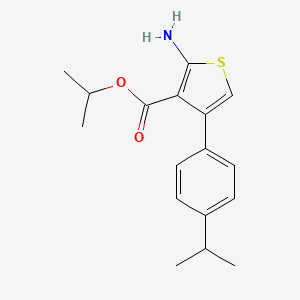The mechanism by which Isopropyl 2-amino-4-(4-isopropylphenyl)thiophene-3-carboxylate exerts its effects involves its interaction with molecular targets and pathways. The compound may bind to specific receptors or enzymes, leading to the modulation of biological processes. The exact mechanism can vary depending on the specific application and the biological system .