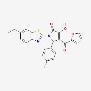 1-(6-ethylbenzo[d]thiazol-2-yl)-5-(4-fluorophenyl)-4-(furan-2-carbonyl)-3-hydroxy-1H-pyrrol-2(5H)-one is a compound of interest due to its complex structure and potential biological activities. Its unique arrangement of functional groups suggests various mechanisms of action, making it a candidate for therapeutic applications.