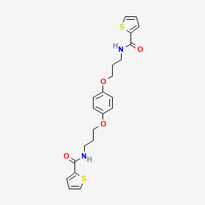 N-[3-(4-{3-[(2-thienylcarbonyl)amino]propoxy}phenoxy)propyl]-2-thiophenecarboxamide, commonly referred to as compound 1, is a synthetic organic compound with potential biological activity. This article aims to explore the biological activity of compound 1 through various studies, highlighting its pharmacological properties, mechanisms of action, and relevant case studies.