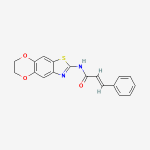 InChI=1S/C18H14N2O3S/c21-17(7-6-12-4-2-1-3-5-12)20-18-19-13-10-14-15(11-16(13)24-18)23-9-8-22-14/h1-7,10-11H,8-9H2,(H,19,20,21)/b7-6+ | |