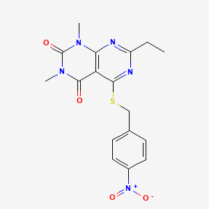 7-ethyl-1,3-dimethyl-5-((4-nitrobenzyl)thio)pyrimido[4,5-d]pyrimidine-2,4(1H,3H)-dione is a useful research compound. Its molecular formula is C17H17N5O4S and its molecular weight is 387.41. The purity is usually 95%.