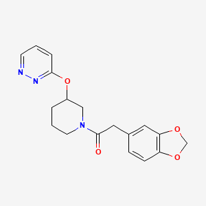 InChI=1S/C18H19N3O4/c22-18(10-13-5-6-15-16(9-13)24-12-23-15)21-8-2-3-14(11-21)25-17-4-1-7-19-20-17/h1,4-7,9,14H,2-3,8,10-12H2 | |