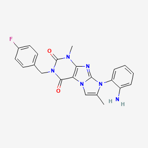The compound 8-(2-aminophenyl)-3-(4-fluorobenzyl)-1,7-dimethyl-1H-imidazo[2,1-f]purine-2,4(3H,8H)-dione is a member of the imidazopurine class of compounds, which have garnered attention for their diverse applications in medicinal chemistry and pharmacology. This article explores its scientific research applications, supported by data tables and case studies.