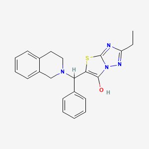 The synthesis of 2-ethyl-5-[phenyl(1,2,3,4-tetrahydroisoquinolin-2-yl)methyl]-[1,2,4]triazolo[3,2-b][1,3]thiazol-6-ol typically involves multi-step organic reactions. One common approach is to start with the preparation of the 3,4-dihydroisoquinoline core, which can be synthesized using the Castagnoli–Cushman reaction . This intermediate is then subjected to further functionalization to introduce the phenylmethyl group and the thiazolo[3,2-b][1,2,4]triazole moiety. The final step often involves cyclization under specific conditions to form the desired compound.
