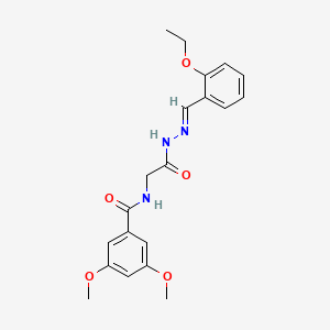 (E)-N-(2-(2-(2-ethoxybenzylidene)hydrazinyl)-2-oxoethyl)-3,5-dimethoxybenzamide is a synthetic organic compound characterized by its complex structure, which includes an ethoxybenzylidene group, a hydrazinyl linkage, and a dimethoxybenzamide moiety. This compound is of interest in various fields of scientific research due to its potential biological activities and applications in medicinal chemistry.