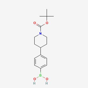 The mechanism of action of 4-(1-(Tert-butoxycarbonyl)piperidin-4-YL)phenylboronic acid depends on its specific application. In medicinal chemistry, it may act as an inhibitor or modulator of specific enzymes or receptors. The boronic acid group can form reversible covalent bonds with active site residues, altering the activity of the target protein. The piperidine ring and phenyl ring provide structural features that enhance binding affinity and specificity.