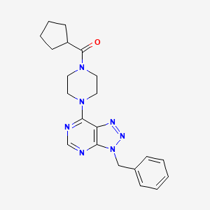 The synthesis of (4-(3-benzyl-3H-[1,2,3]triazolo[4,5-d]pyrimidin-7-yl)piperazin-1-yl)(cyclopentyl)methanone typically involves multi-step organic reactions. The process begins with the preparation of the triazolopyrimidine core, followed by the introduction of the piperazine and cyclopentyl groups. Key steps include: