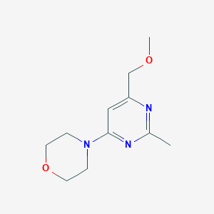 The synthesis of 4-[6-(Methoxymethyl)-2-methylpyrimidin-4-yl]morpholine typically involves the reaction of 2-methyl-4,6-dichloropyrimidine with morpholine in the presence of a base such as potassium carbonate. The reaction is carried out in a solvent like dimethylformamide (DMF) at elevated temperatures . The methoxymethyl group can be introduced through a subsequent reaction with methoxymethyl chloride under basic conditions .