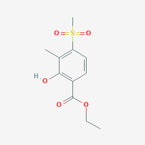 The synthesis of ethyl 2-hydroxy-3-methyl-4-(methylsulfonyl)benzoate typically involves the esterification of 2-hydroxy-3-methyl-4-(methylsulfonyl)benzoic acid with ethanol. The reaction is catalyzed by an acid, such as sulfuric acid, and is carried out under reflux conditions to ensure complete conversion of the acid to the ester .