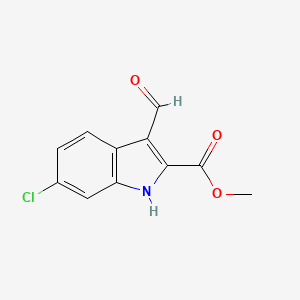The mechanism of action of methyl 6-chloro-3-formyl-1H-indole-2-carboxylate involves its interaction with specific molecular targets. The formyl group can participate in nucleophilic addition reactions, while the chloro group can undergo substitution reactions. These interactions can modulate biological pathways and affect cellular functions. The exact molecular targets and pathways depend on the specific application and context of use.