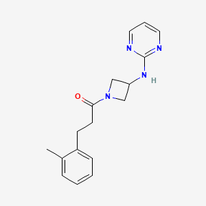 1-(3-(Pyrimidin-2-ylamino)azetidin-1-yl)-3-(o-tolyl)propan-1-one, with the CAS number 2320851-12-3, is a synthetic organic compound that has garnered attention in medicinal chemistry due to its potential biological activities. This compound features a unique structural combination of an azetidine ring, a pyrimidin-2-ylamino moiety, and an o-tolyl group, which may contribute to its pharmacological properties.