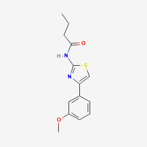 N-[4-(3-Methoxyphenyl)-1,3-thiazol-2-yl]butanamide is a thiazole-based compound featuring a butanamide group at position 2 of the thiazole ring and a 3-methoxyphenyl substituent at position 2. Thiazoles are heterocyclic aromatic compounds with a sulfur and nitrogen atom in the five-membered ring, known for their diverse pharmacological activities, including anti-inflammatory, antimicrobial, and enzyme inhibitory properties . The butanamide chain introduces lipophilicity, which may influence pharmacokinetic properties such as membrane permeability and metabolic stability.