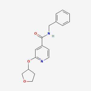 The mechanism of action of N-benzyl-2-(oxolan-3-yloxy)pyridine-4-carboxamide involves its interaction with specific molecular targets. The compound may bind to enzymes or receptors, altering their activity and leading to a biological response. The exact pathways and targets depend on the specific application and the biological system being studied.