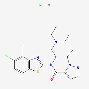 The synthesis of N-(5-chloro-4-methyl-1,3-benzothiazol-2-yl)-N-[2-(diethylamino)ethyl]-1-ethyl-1H-pyrazole-5-carboxamide hydrochloride typically involves multiple steps. The process begins with the preparation of the benzothiazole ring, followed by the introduction of the pyrazole ring and the diethylaminoethyl group. The final step involves the formation of the hydrochloride salt.