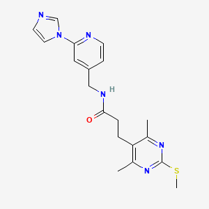 3-[4,6-dimethyl-2-(methylsulfanyl)pyrimidin-5-yl]-N-{[2-(1H-imidazol-1-yl)pyridin-4-yl]methyl}propanamide is a useful research compound. Its molecular formula is C19H22N6OS and its molecular weight is 382.49. The purity is usually 95%.