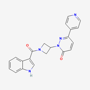 2-[1-(1H-indole-3-carbonyl)azetidin-3-yl]-6-(pyridin-4-yl)-2,3-dihydropyridazin-3-one is a complex organic compound that features an indole moiety, an azetidine ring, and a pyridazinone core. The indole structure is known for its presence in many bioactive molecules, contributing to various pharmacological activities . The azetidine ring is a four-membered nitrogen-containing ring, which is relatively rare and often associated with unique biological properties . The pyridazinone core is a six-membered ring containing two nitrogen atoms, which is known for its potential in medicinal chemistry .