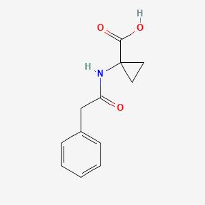 The mechanism of action of 1-(2-Phenylacetamido)cyclopropane-1-carboxylic acid involves its interaction with specific molecular targets and pathways. The phenylacetamido group can interact with enzymes and receptors, modulating their activity. The cyclopropane ring structure contributes to the compound’s stability and reactivity, allowing it to participate in various biochemical processes. Detailed studies are required to elucidate the exact molecular targets and pathways involved.