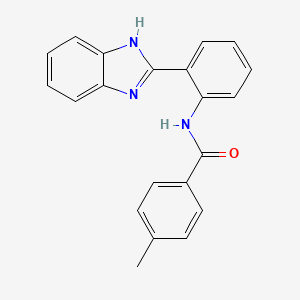 The synthesis of N-(2-(1H-benzo[d]imidazol-2-yl)phenyl)-4-methylbenzamide typically involves the condensation of 2-(1H-benzo[d]imidazol-2-yl)aniline with 4-methylbenzoyl chloride. The reaction is usually carried out in the presence of a base such as triethylamine or pyridine, which acts as a catalyst. The reaction mixture is stirred at room temperature or slightly elevated temperatures to facilitate the formation of the desired product. The crude product is then purified by recrystallization or column chromatography to obtain the pure compound .