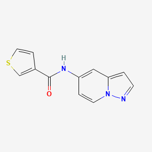 The mechanism of action of N-(pyrazolo[1,5-a]pyridin-5-yl)thiophene-3-carboxamide involves its interaction with specific molecular targets and pathways. The compound may act as an enzyme inhibitor or receptor modulator, affecting various biochemical processes. The exact molecular targets and pathways depend on the specific application and context of use .