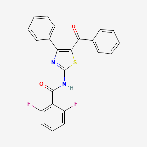 The mechanism of action of N-(5-benzoyl-4-phenylthiazol-2-yl)-2,6-difluorobenzamide involves its interaction with specific molecular targets, such as enzymes or receptors. The compound may inhibit the activity of these targets by binding to their active sites, thereby blocking their function. This inhibition can lead to various biological effects, such as the suppression of cell proliferation or the induction of apoptosis in cancer cells.