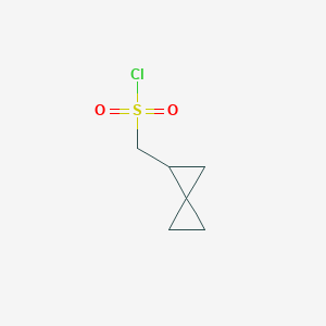 The mechanism of action of Spiro[2.2]pentan-1-ylmethanesulfonyl chloride involves the reactivity of the sulfonyl chloride group. This group is highly electrophilic and readily reacts with nucleophiles to form sulfonamide, sulfonate ester, or sulfonate thioester bonds. The spirocyclic structure provides steric hindrance, which can influence the reactivity and selectivity of the compound in various reactions.