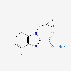The mechanism of action of Sodium 1-(cyclopropylmethyl)-4-fluoro-1H-benzo[d]imidazole-2-carboxylate is likely related to its ability to interact with biological macromolecules such as proteins and nucleic acids. The benzimidazole core can intercalate with DNA, disrupting replication and transcription processes. The fluorine atom and cyclopropylmethyl group may enhance binding affinity and specificity to target enzymes or receptors, leading to inhibition of their activity.