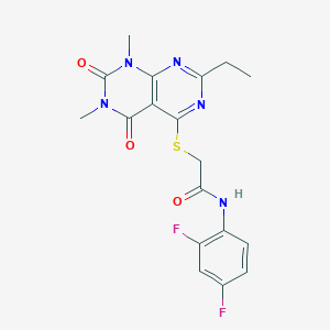 N-(2,4-difluorophenyl)-2-((2-ethyl-6,8-dimethyl-5,7-dioxo-5,6,7,8-tetrahydropyrimido[4,5-d]pyrimidin-4-yl)thio)acetamide is a useful research compound. Its molecular formula is C18H17F2N5O3S and its molecular weight is 421.42. The purity is usually 95%.